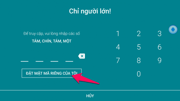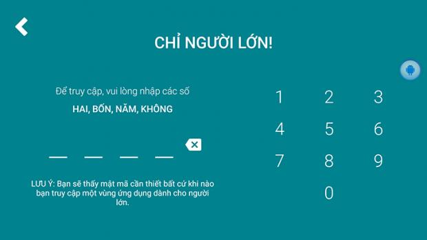 Lần đầu tiên mở ứng dụng bạn phải nhập mật khẩu tương ứng với chữ số trên màn hình. Điều này là để trẻ em tự thiết lập cài đặt.