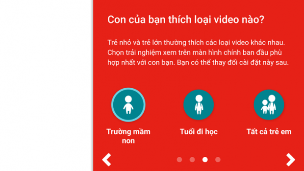 Nhấn tiếp vào nút bên góc phải dưới đến mục chọn độ tuổi. Bạn chọn độ tuổi của con mình để được gợi ý những nội dung phù hợp nhất.