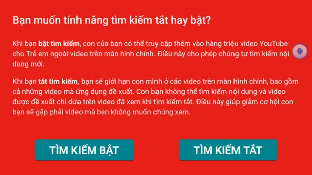 Mặc dù đã hạn chế các nội dung người lớn, không phù hợp với trẻ em nhưng nếu bạn muốn tăng cường thêm độ an toàn,Youtube Kids cho phép bạn tắt luôn chế độ tìm kiếm. Nghĩa là trẻ em chỉ có thể truy cập đến những nội dung được đề xuất.