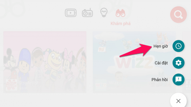 Một tiện ích nữa của ứng dụng này là cho phép bạn hạn chế thời gian sử dụng Youtube của con mình bằng cách nhấn vào biểu tượng ổ khóa bên góc phải dưới. Chọn Hẹn giờ.