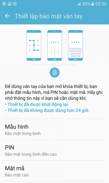 1Mở khóa màn hình bằng vân tay