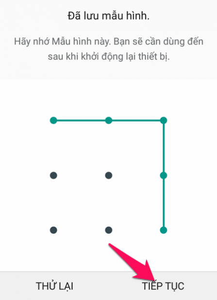 Sau khi đã tạo được mật khẩu bảo vệ, bạn nhấn Tiếp tục để đến phần thiết lập vân tay.