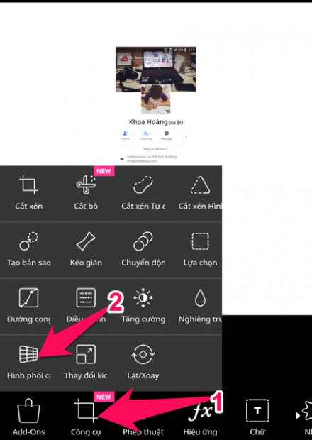Kéo thanh công cụ sang trái, chọn mục Thêm ảnh.