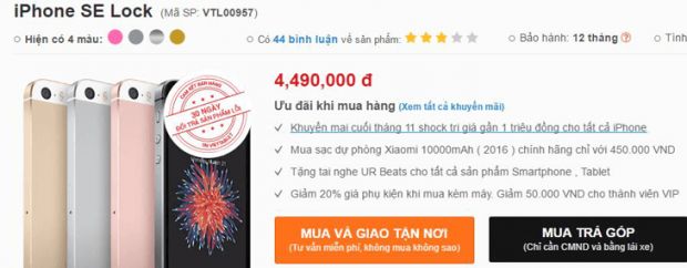 Dạo quanh một số website bán hàng xách tay, iPhone SE lock đang được bán với giá rất rẻ, chỉ khoảng 4.5 triệu đồng, tức là rẻ hơn đến 2.5 triệu so với iPhone 5s quốc tế chính hãng. Chúng ta có được một thiết bị có cấu hình cao hơn hẳn cùng nhiều tính năng nâng cấp hấp dẫn.