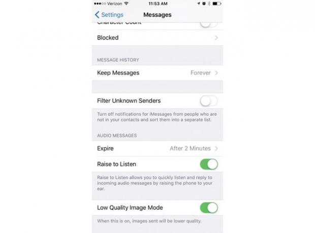Nếu dùng iMessages để liên lạc và gửi tin nhắn, không cần chất lượng ảnh cao, người dùng có thể bật chế độ gửi ảnh có dung lượng thấp. Hãy vào Settings (cài đặt) > Messages (Nhắn tin) > Low Quality Image Mode (Chế độ ảnh phân giải thấp).