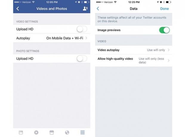 Facebook thường có tính năng tự phát video khi người dùng lướt ngang qua, vô tình làm ngốn nhiều dữ liệu di động. Để tắt, vào Facebook chọn Settings (cài đặt) > Account Settings (Cài đặt tài khoản) > Videos and Photos/ Autoplay (Ảnh và video/ tự động phát). Đánh dấu một trong hai lựa chọn là “On Wi-Fi connection only”, tự chạy khi được kết nối Wi-Fi, hoặc “Never Autoplay videos” (Không bao giờ tự chạy video) để tắt tính năng.