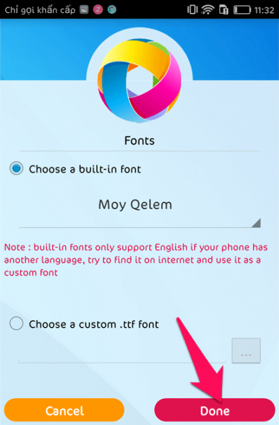 Sau khi quá trình đóng gói theme kèm font bạn vừa đổi hoàn tất, bạn sẽ được chuyển ngay đến màn hình đổi theme.