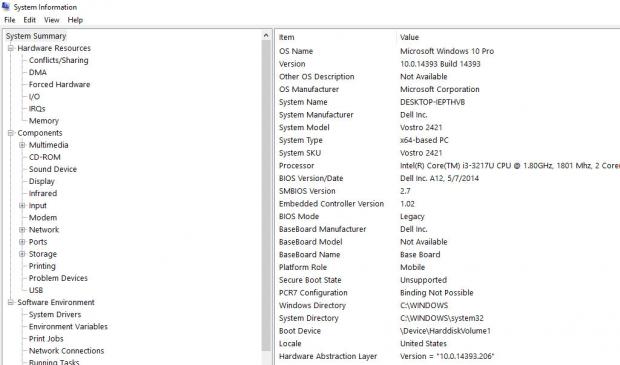 Kiểm tra thông tin hệ thống cơ bản với Msinfo32