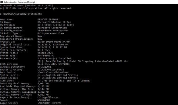 Bước 3: Gõ lệnh systeminfo sau đó nhấn Enter