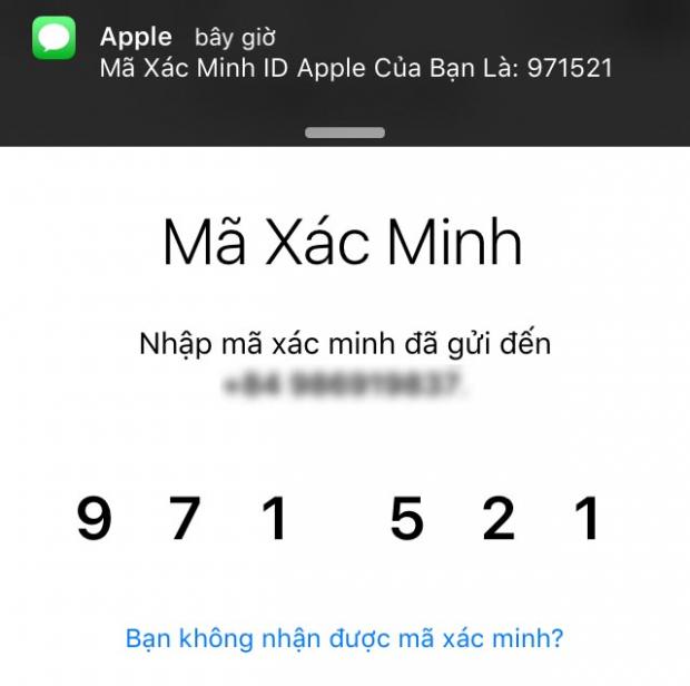 Bước 9: Nhập mã xác minh Apple vừa gửi tin nhắn cho bạn.