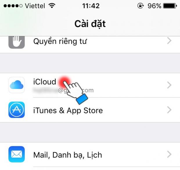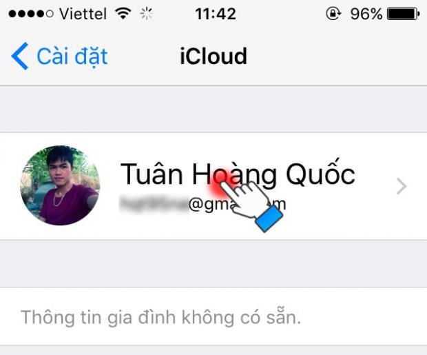 Bước 2: Chọn vào tài khoản iCloud của bạn.