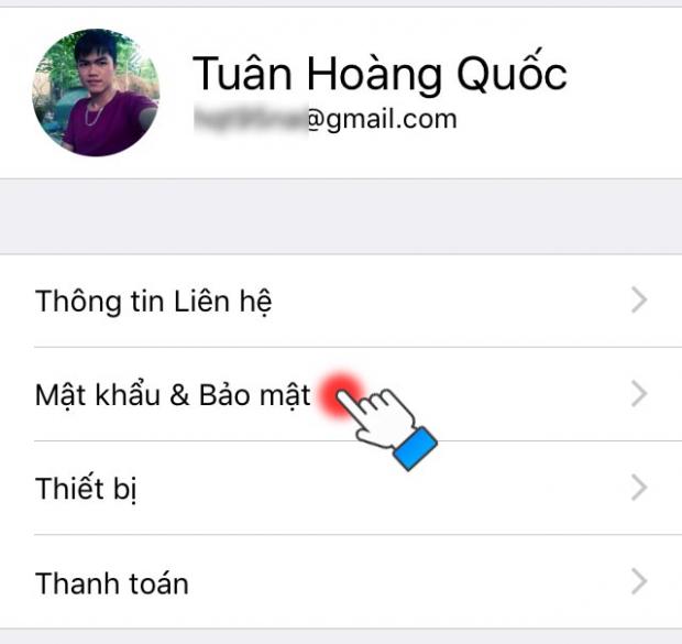 Bước 4: Chọn Mật khẩu và Bảo mật.