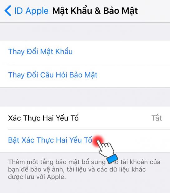 Bước 5: Chọn Bật xác thực hai yếu tố.