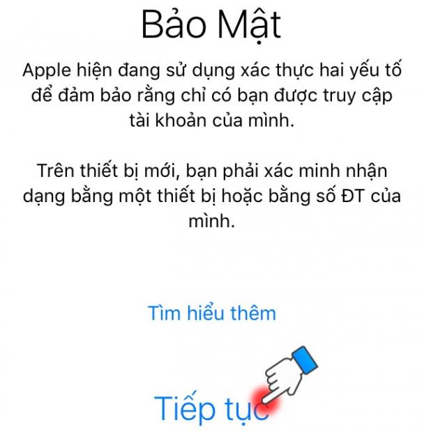 Bước 6: Apple giới thiệu về một số tính năng của việc xác thực hai yếu tố, bạn chọn Tiếp tục.