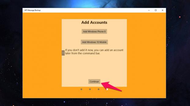 Bước 2: Cài đặt xong WP Message Backup – Windows Apps on Microsoft Store mở phần mềm > chọn phiên bản Windows Mobile > đăng nhập tài khoản Microsoft trên điện thoại Windows và chờ cho các tin nhắn để tự động tải về