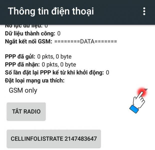 Từ bàn phím bạn nhập vào dòng lệnh: *#*#4636#*#* ngay lập tức sẽ có một bảng lựa chọn như hình.