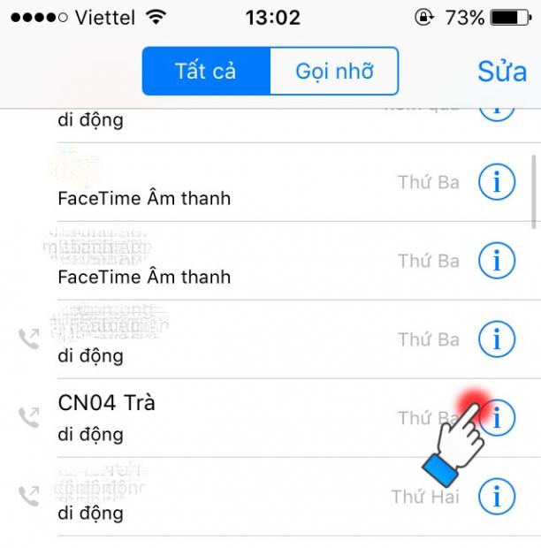 Đầu tiên bạn vào Nhật ký cuộc gọi và chọn số cần chặn.
