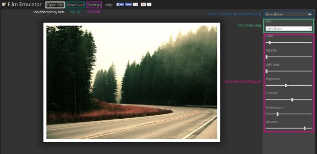 Film Emulator là một trang web cũng cấp hơn 100 hiệu ứng có sẵn để bạn áp lên ảnh. Cách sử dụng vô cùng đơn giản, Open File để chọn ảnh cần áp hiệu ứng, chọn hiệu ứng ở danh sách bên phải. Sau đó Download về.