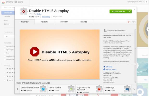Trên Chrome tuy có khá nhiều cách để ngăn auto play, nhưng có thể nói Disable HTML 5 Autoplay là một trong những tiện ích mở rộng dễ sử dụng và hiệu quả nhất mà bạn nên thử qua nếu bạn đã chán ngấy cái cảnh bị làm phiền bởi quảng cáo khi vào một trang nào đó, gây khó chịu cho mình và cả những người xung quanh.