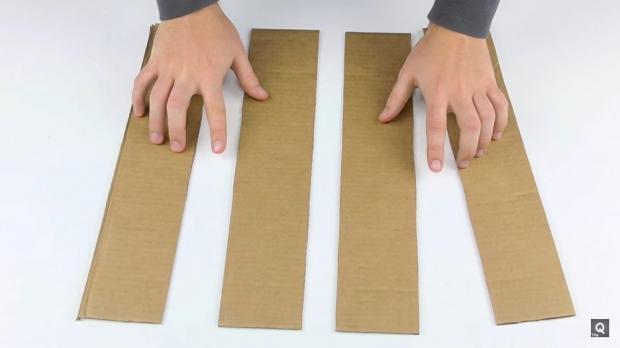 Tiếp theo là phần đế trụ cho sản phẩm, chúng ta sẽ dùng 4 miếng bìa với kích thước giống nhau và kết dính lại bằng súng bắn keo