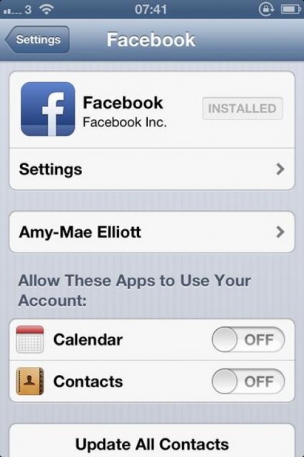 Nếu ở bất cứ thời điểm nào bạn không muốn đồng bộ nữa các bạn bè Facebook của bạn từ ứng dụng danh bạ iPhone của bạn, trượt đến menu 'Settings' của điện thoại của bạn, vào Facebook và trượt đến lực chọn 'Contacts' để 'off'.
