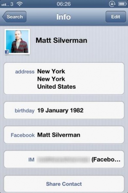 Nếu bạn tải lên ứng dụng Contacts của iPhone, bạn giờ đây đã có thể xem các bạn bè trong danh sách này, hoàn thiện các bức ảnh hồ sơ và các dữ liệu liên quan được lấy từ các hồ sơ Facebook của bạn.