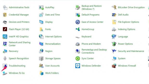 Bước 2: Ở Category chọn Large icons, sau đó click Troubleshooting
