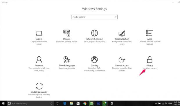 Bước 1: Gõ phím tắt Windows + I, sau đó click Privacy