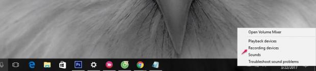 Bước 1: Đi tới biểu tượng âm thanh của bạn, chuột phải chọn Recording devices