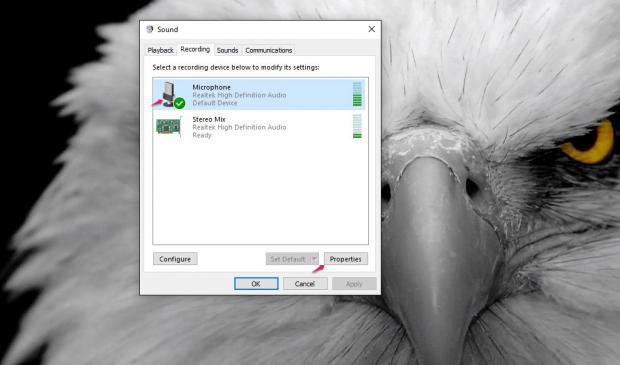 Bước 2: Click vào Properties bạn có thể điều chỉnh được các thuộc tính như: Hủy tiếng ồn, hủy DC Offset, hủy Echo và nhiều tùy chọn khác... Đôi khi vô hiệu hóa tất cả hiệu ứng âm thanh cũng có thể khắc phục được vấn đề Microphone