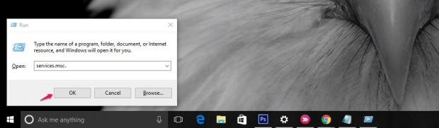 Bước 1: Sử dụng tổ hợp phím Windows + R để mở hộp thoại Run, sau đó gõ services.msc