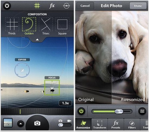 Camera Awesome là ứng dụng chụp ảnh được xếp vị trí dẫn đầu trên iTunes ở nhiều quốc gia khác nhau và nhận được nhiều lời khen ngợi. Camera Awesome có giao diện phong cách và độc đáo, bao gồm một loạt các lựa chọn tốt đã có ở những ứng dụng khác, nhưng lại được đóng gói một cách hợp lý.