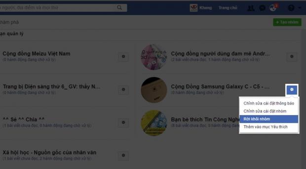 Thông thường, muốn thoát ra khỏi nhóm nào đó thì các bạn phải vào group đó, và chọn rời khỏi nhóm. Điều này sẽ khá bất tiện khi có quá nhiều Group mà bạn muốn out ra. Tuy nhiên, bạn có thể thực hiện nhanh chóng bằng cách: