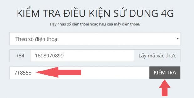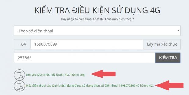 Bước 4: Sau khi nhấn vào Kiểm Tra, Viettel sẽ trả về kết quả SIM và điện thoại của bạn có hỗ trợ 4G hay không.