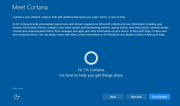 Bước 9: Chế độ lựa chọn bật Cortana hay không? Nếu có thì bạn nhấn Use Cortana nhé