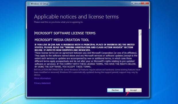 Bước 3: Chạy tool đó lên, và nhấn Accept để tiến hành cài đặt Windows 10