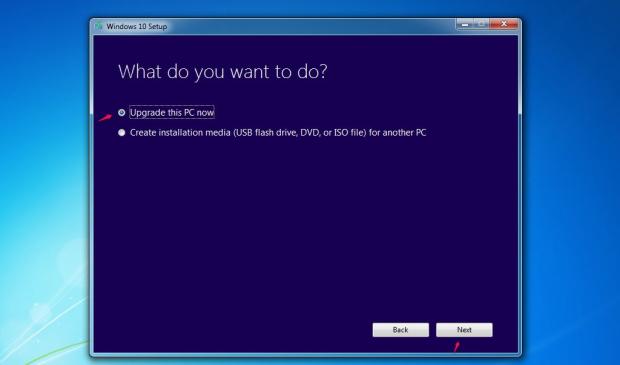 Bước 4: Bạn sẽ có hai tùy chọn, hãy chọn Upgrade this PC now