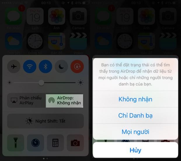 Tiếp theo là kích hoạt tính năng AirDrop trên cả 2 thiết bị tại Trung tâm kiểm soát. Tại đây, người dùng sẽ có 3 tùy chọn sử dụng, mục đích để bảo mật hơn cho iPhone của bạn: