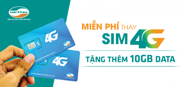Đối với các thuê bao chuyển đổi sim 4G hoặc đăng ký sim 4G mới từ ngày 8/3/2017, Viettel triển khai chương trình khuyến mãi dùng miễn phí 10 GB dung lượng truy cập internet miễn phí trong vòng 7 ngày, chỉ cần nhắn tin 4G gửi 191.