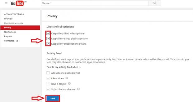 Nếu bạn đã đăng ký trên YouTube, truy cập cài đặt bảo mật và kiểm tra các hộp thoại cài đặt bảo mật để đảm bảo không ai có thể xem những gì các kênh bạn đăng ký.