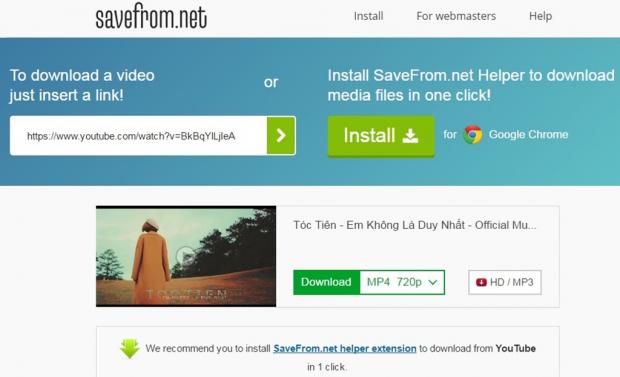Có một số website và ứng dụng dành cho trình duyệt Chrome có thể giúp bạn làm việc này. Đây là một trong những trang web tốt nhất: Save From Net. Bạn chỉ đơn giản là copy link video, nó không mất quá nhiều thời gian đâu nhé.