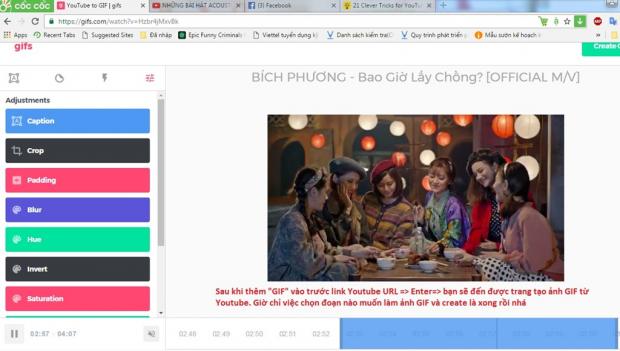 Làm ảnh GIF không hề khó đâu bạn nhé, thế mà nhiều người trong chúng ta chả biết phải thế nào để có những bức ảnh động thú vị như ý muốn. Với YouTube, bạn chỉ cần thêm vào cụm từ “GIF” tại phần mở đầu của đường dẫn (YouTube URL), như thế này nè: