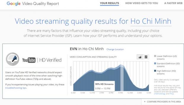 Chương trình Video Quality Report từ Google cho phép bạn kiểm tra chất lượng video mà mình có thể xem theo tốc độ đường truyền của nhà mạng.