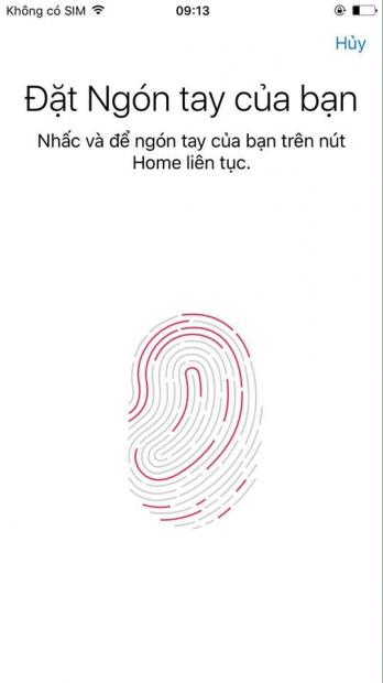 Khi thiết lập vân tay, lúc này máy sẽ yêu cầu đặt ngón tay lên phím Home. Việc bạn cần làm chỉ là thay phiên đặt 2 ngón tay bất kì vào đây cho đến khi kết thúc quá trình thiết lập.