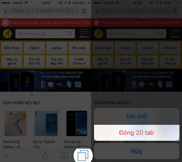 Trong khi đang duyệt nội dung một trang Web nào đó, nhấn giữ nút Tabs ở góc dưới cùng bên ohari màn hình, ngay lập tức một tùy chọn Đóng ... tab sẽ xuất hiện.