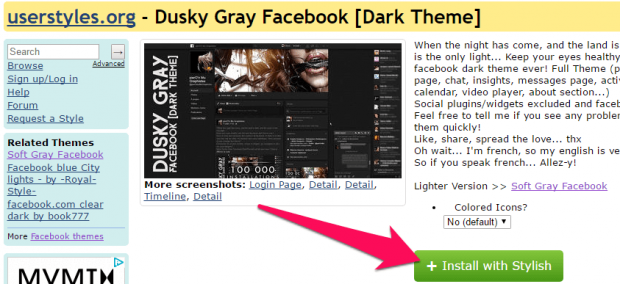 Khi đã chọn được giao diện ưa thích bạn nhấn vào Install with Stylish để cài đặt.