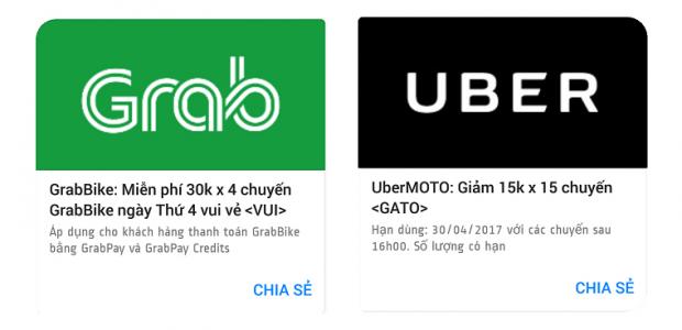 Uber và Grab, 2 dịch vụ gọi xe taxi thường có khuyến mãi giảm giá nhưng làm sao bạn biết được ngay lúc này đang có mã giảm giá gì? Tham khảo thủ thuật đơn giản sau đây để tìm khuyến mãi mọi lúc, mọi nơi nhé.