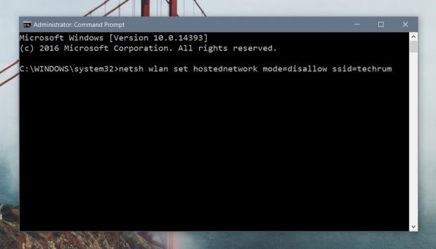 netsh wlan set hostednetwork mode=disallow ssid=techrum
