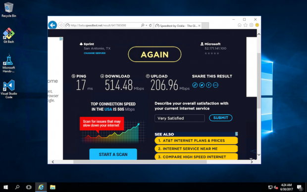 Đây là tốc độ mạng khi kiểm tra bằng speedtest.net, hoàn hảo để bạn có thể dùng VPS làm máy chủ cho website hay tải file.