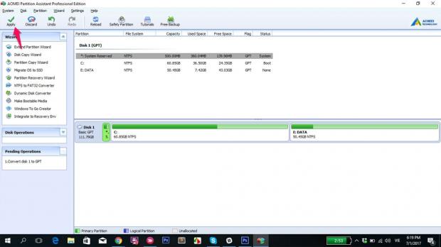 Bước 4: Nhấn Apply để bắt đầu quá trình chuyển đổi MBR sang GPT.
